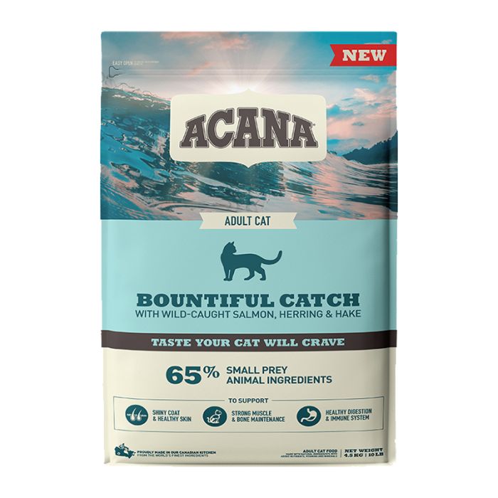 Πλήρης τροφή με σολομό, ρέγγα και βακαλάο, αλιευμένα στη φύση, για ενήλικες γάτες. Με 65% ζωικά συστατικά από μικρά θηράματα που θα κυνηγούσαν οι γάτες στο φυσικό τους περιβάλλον, γεγονός που κάνει την τροφή αυτή εξαιρετικά γευστική. Περιέχει βιταμίνες, μέταλλα και αντιοξειδωτικά που ενισχύουν το ανοσοποιητικό σύστημα. Η ταυρίνη και τα EPA-DHA βοηθούν στην υγιή λειτουργία της καρδιάς και των ματιών, ενώ τα Ω-3 και Ω-6 λιπαρά ενισχύουν τη λάμψη και την υγεία του δέρματος και του τριχώματος της γάτας σας. Λοιπές λειτουργικές, θρεπτικές ουσίες ολοκληρώνουν την καταπληκτική αυτή τροφή και φροντίζουν τη γάτα συνολικά και ισορροπημένα. Χαρακτηριστικά Υψηλής ποιότητας πρωτεΐνη για υποστήριξη και ανάπτυξη μυών και οστών Απαραίτητες βιταμίνες, μεταλλικά στοιχεία και αντιοξειδωτικά για υποστήριξη υγιούς ανοσοποιητικού Ισορροπημένα Ωμέγα-3 και Ωμέγα-6 λιπαρά οξέα για υγιές δέρμα και λαμπερό τρίχωμα Ζωικά συστατικά από μικρά θηράματα και εγχύσεις συκωτιού για γεύση που θα λατρέψουν οι γάτες Παρατηρήσεις Εξαιτίας παραγόντων που έχουν να κάνουν με τη θερμοκρασία του περιβάλλοντος, κάποιες συσκευασίες μπορεί να φαίνεται ότι είναι αεροστεγώς κλεισμένες και κάποιες άλλες όχι. Παρόλα αυτά δεν υπάρχει καμία διαφορά και η τροφή είναι εξίσου φρέσκια σε όλες. Το χρώμα και το άρωμα της κροκέτας μπορεί να μην είναι το ίδιο σε κάθε συσκευασία. Αυτό συμβαίνει λόγω της χρήσης φρέσκων συστατικών (κρεάτων, ψαριών, φρούτων και λαχανικών)nbsp;τα οποίαnbsp;διαφοροποιούνται αναλόγως με την εποχή και τη διαθεσιμότητα της πρώτης ύλης. Ωστόσο, η αναλυτική σύσταση της τροφής παραμένει ίδια.nbsp; Η τροφή των στειρωμένων γατών πρέπει να έχει pH μικρότερο του 7. Οι τροφές Acananbsp;έχουν pH 5.5 με αποτέλεσμα τα ούρα κατά την έξοδό τους να έχουν pH περίπου 6. Έτσι διασφαλίζεται η σωστή λειτουργία του ουροποιητικού συστήματος που είναι τόσο σημαντική για την υγεία των γατών.