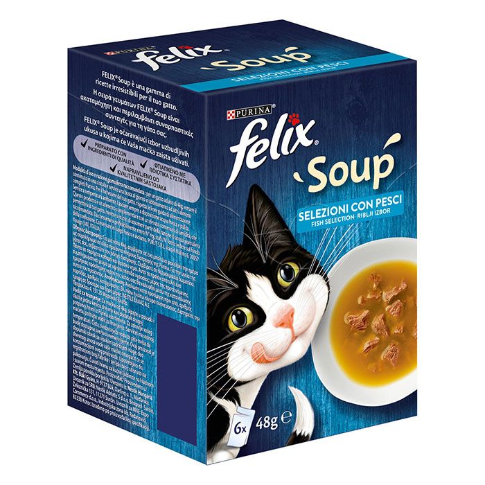 Η μικρή σκανδαλιάρα γάτα σας θα αγαπήσει τη γεύση του νόστιμου ζωμού και δεν θα μπορεί να αντισταθεί στα ζουμερά κομμάτια. Κάθε φακελάκι Felix Soup της δίνει την απαραίτητη ενέργεια για να συνεχίσει ακάθεκτη τις σκανταλιές της και χωρίς πρόσθετες τεχνητές χρωστικές, αρωματικές ύλες ή συντηρητικά, μπορείτε να νιώθετε καλά προσφέροντάς το στη γάτα σας. Προσθέστε νοστημιά στην καθημερινότητα της γάτας σας με τις ακαταμάχητες συνταγές felix soup, το τέλειο συμπλήρωμα για τη διατροφή τους.