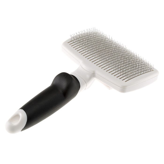 Η βούρτσα GRO 5769 είναι κατάλληλη για μεσαίου τριχώματος και μακρύτριχα ζώα. Τα κυρτά συρμάτινα δοντάκια εξαλείφουν αποτελεσματικά το νεκρό τρίχωμα χωρίς να φτάνει στο δέρμα του ζώου και να το ερεθίζει. Χάρη στο σύστημα easy removing, οι τρίχες είναι εύκολο να απομακρυνθούν από τη βούρτσα. Η καινοτόμος εργονομική λαβή που είναι επικαλυμμένη με μαλακό καουτσούκ εξασφαλίζει μέγιστη άνεση κατά τη διάρκεια του βουρτσίσματος.