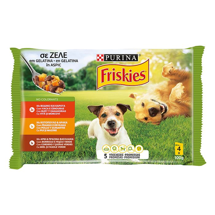 Description / Friskies Adult Πολυσυσκευασία Με Βοδινό, Κοτόπουλο & Αρνί 4x100G
