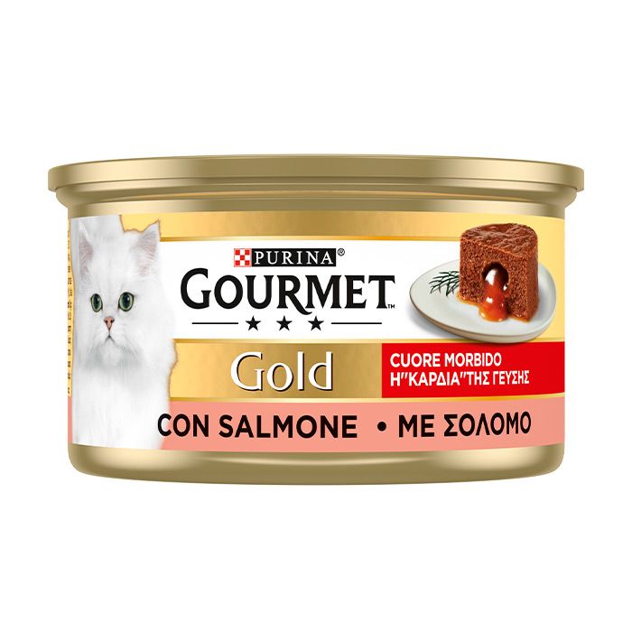 Η σειρά Gourmet Gold “Η Καρδιά της Γεύσης”, είναι μια ποικιλία από τρυφερές και ακαταμάχητες μους με βοδινό, κοτόπουλο, σολομό και άλλες εξαιρετικές γεύσεις, με μια απροσδόκητα γευστική σάλτσα στο εσωτερικό που θα κάνει το γεύμα της γάτας σας ακόμα πιο απολαυστικό. Η γάτα σας θα γευτεί πρώτα την απαλή και ντελικάτη μους και κατόπιν θα ανακαλύψει μια νόστιμη, ζουμερή σάλτσα που θα την ευχαριστήσει.