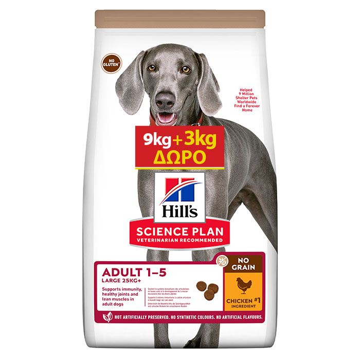 Hill's Science Plan Adult Large No Grain Με Κοτόπουλο 9Kg+3Kg Δώρο