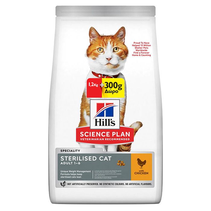 Hill's Science Plan Adult Sterilised Cat Με Κοτόπουλο 1.2Kg +300G Δώρο