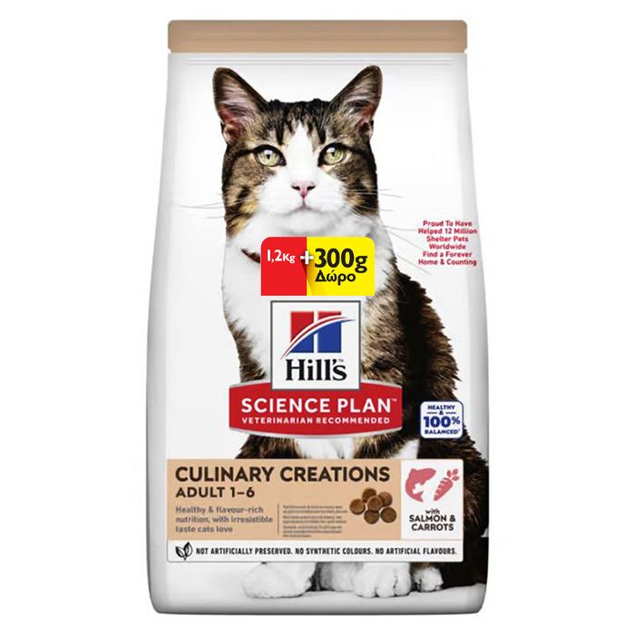 Description / Hill's Science Plan Culinary Creations Γάτας Με Σολομό & Καρότα 1.2Kg+300G Δώρο