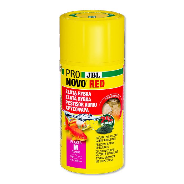 Η Jbl Pronovo Red Flakes περιέχει φυσικές πρώτες ύλες χωρίς τεχνητά πρόσθετα για μια φυσική διατροφή και υγιή χρυσόψαρα. Χαρακτηριστικά: Πρεβιοτική, επιπλέουσα τροφή για χρυσόψαρα: οι ειδικές φυτικές ίνες της τροφής παρέχουν στα ευεργετικά βακτήρια του εντέρου τροφή για μια υγιή πέψη Αναπτύχθηκε σε συνεργασία με κορυφαίους εκτροφείς της Ασίας Πολύ υψηλή αποδοχή σε όλες τις φυλές χρυσόψαρων, χάρη σε υψηλής ποιότητας πρώτες ύλες, όπως γαρίδες, σολομό και σπιρουλίνα Με πολύ υψηλής ποιότητας φυσική ασταξανθίνη από κριλ και σπιρουλίνα, η οποία εξασφαλίζει τέλειο σχηματισμό χρώματος σε χρυσόψαρα και φυλές χρυσόψαρων
