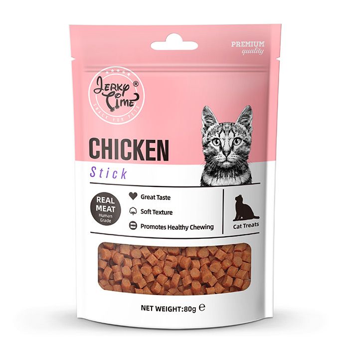 Επιβραβεύστε τη γάτα σας με λιχουδιές JERKY TIME με κοτόπουλο. *Το σακουλάκι που υπάρχει στο εσωτερικό με το τζελ σιλικόνης, δεν καταναλώνεται.