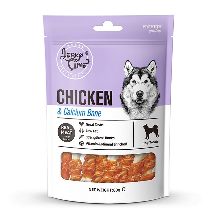 Επιβραβεύστε το σκύλο σας με λιχουδιές κοτόπουλου με ασβέστιο JERKY TIME. Να παρέχετε στο σκύλο σας πάντα φρέσκο νερό. Μερικοί σκύλοι μπορεί να είναι αλλεργικοί στο κοτόπουλο. *Το σακουλάκι που υπάρχει στο εσωτερικό με το τζελ σιλικόνης, δεν καταναλώνεται.