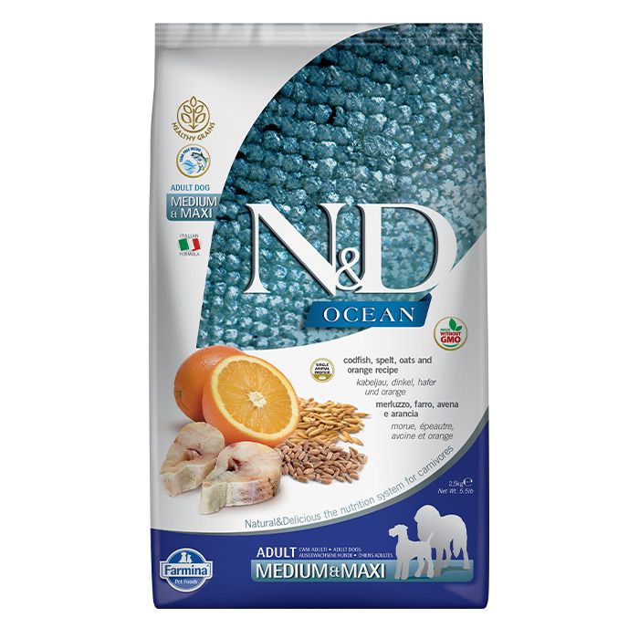 N&D Ocean Adult Medium-Maxi Με Θαλασσινά & Πορτοκάλι 2.5Kg