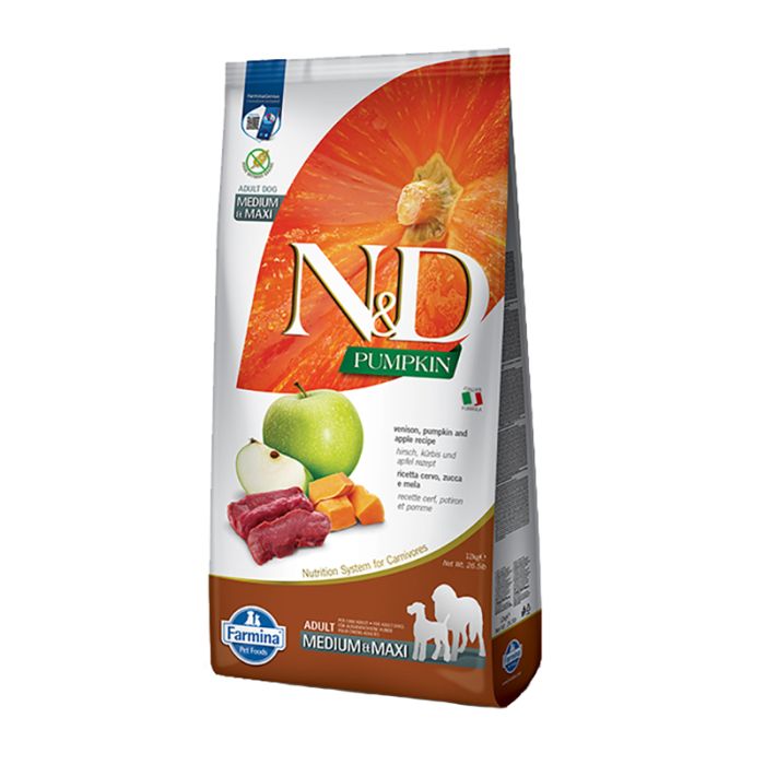 Description / N&D Pumpkin Adult Medium-Maxi Με Ελάφι, Κολοκύθα & Μήλο 12Kg