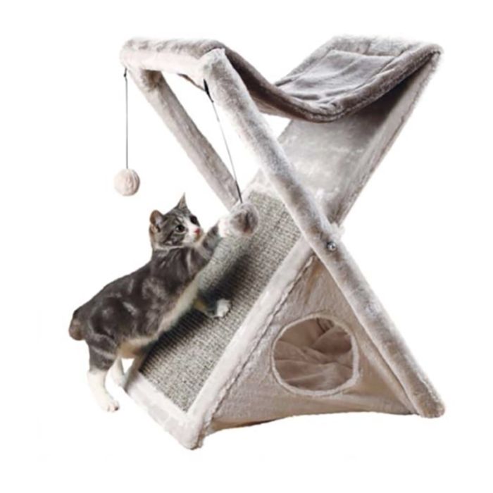 Ονυχοδρόμιο 3 σε 1 καθώς συνδυάζει επιφάνεια ξυσίματος με παιχνίδι, και φωλίτσα για να μπορεί η γατούλα σας να ξεκουραστεί και να κοιμηθεί. Είναι ο κατάλληλος τρόπος για να προστατέψετε τα έπιπλά σας και ταυτόχρονα να της προσφέρετε ένα μέρος όπου μπορεί να ξύσει τα νύχια της, να παίξει και να ξεκουραστεί. Χαρακτηριστικά Ονυχοδρόμιο 3 σε 1 για ξύσιμο, παιχνίδι αλλά και ύπνο Με επιφάνεια κατασκευασμένη από υλικό ανθεκτικό στα νύχια της γάτας σας, κατάλληλη για ξύσιμο Με μπάλεςnbsp;που κρέμονται για παιχνίδι Με φωλιά στο κάτω μέρος και μαξιλάρι στο πάνω μέρος για ύπνο και ξεκούραση αντίστοιχα Διαστάσεις: 51x36x62εκ.