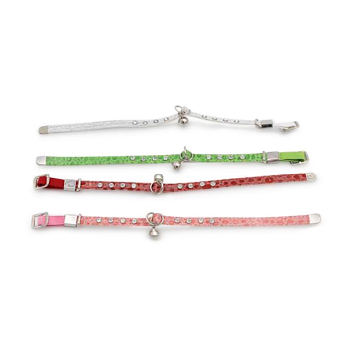 Περιλαίμιο για γάτες με στρας και κουδουνάκι. Κλείνει με πόρπη ώστε να μπορείτε να το ρυθμίσετε στο μήκος που θέλετε.nbsp; Το προϊόν διατίθεται σε διάφορα χρώματα και η επιλογή χρώματος γίνεται τυχαία