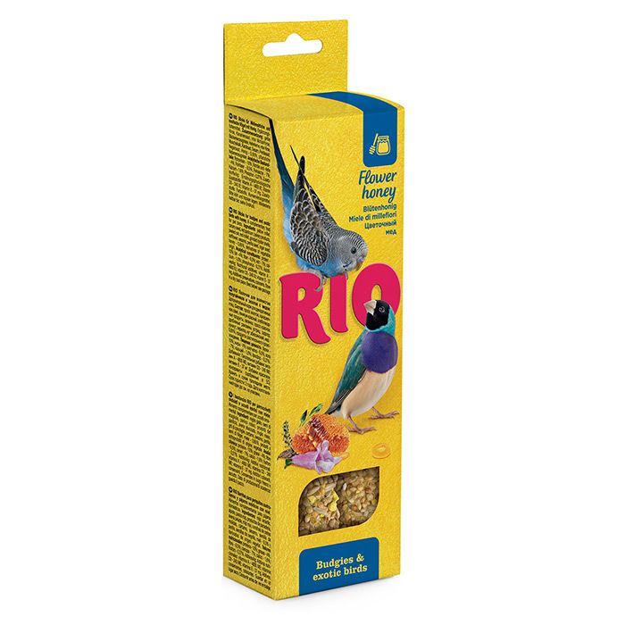 Τα Rio Sticks είναι μία λιχουδιά για πτηνά, ψημένη σε φούρνο. Πλούσιο περιεχόμενο με περισσότερα από 15 συστατικά. Το αφαιρούμενο πιαστράκι επιτρέπει τη σταθεροποίηση του ραβδιού σε οποιοδήποτε τύπο κλουβιού σε διαφορετικές θέσεις. Η σκληρή ράβδος βοηθάει στον καθαρισμό του ράμφους των πουλιών. Τα RIO Sticks προορίζονται για χρήση όχι μόνο ως λιχουδιά, αλλά και ως συναρπαστικό παιχνίδι. Τα ραβδιά παράγονται με ψήσιμο σε ειδικούς φούρνους σύμφωνα με μια μοναδική συνταγή. Αυτή η μοναδική τεχνολογία που χρησιμοποιείται για την παραγωγή των RIO Sticks τα κάνει τόσο νόστιμα και τραγανά. Υπάρχουν δύο στρώματα συστατικών στο ξύλινο ραβδί, το καθένα από τα οποία ψήνεται ξεχωριστά. Αυτό δημιουργεί μια υψηλής ποιότητας λιχουδιά. Το σκληρό ξύλο, στο οποίο είναι τοποθετημένες οι λιχουδιές, είναι ιδανικό για τον καθαρισμό του ράμφους των πτηνών.