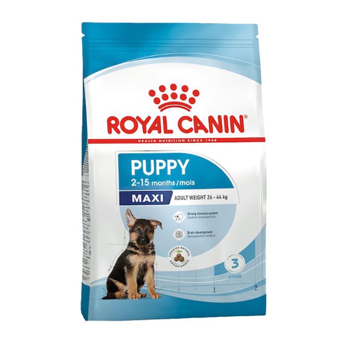 Πλήρης τροφή με πουλερικά, για ανήλικους σκύλους μεγαλόσωμων φυλών, με αναμενόμενο ενήλικο βάρος 26-44kg. Η τροφή αυτή περιέχει θρεπτικά συστατικά όπως βιταμίνη C και Ε, τα οποία αποδεδειγμένα υποστηρίζουν την ανάπτυξη ενός υγιούς ανοσοποιητικού συστήματος. Είναι εμπλουτισμένη με Ωμέγα-3 λιπαρά οξέα (όπως το DHA) που βοηθούν στην υποστήριξη της υγιούς ανάπτυξης του εγκεφάλου. Ένας συνδυασμός ωφέλιμων πρεβιοτικών (όπως FOS, MOS και πολτός τεύτλων) και εξαιρετικά εύπεπτων πρωτεϊνών συμβάλλει στην υποστήριξη μιας υγιούς ισορροπίας της εντερικής μικροχλωρίδας (χλωρίδα του εντέρου) για καλή πέψη. Η τροφή περιέχει επίσης ένα βέλτιστο ενεργειακό περιεχόμενο που έχει σχεδιαστεί για να ικανοποιεί τις ενεργειακές ανάγκες των αναπτυσσόμενων κουταβιών μεγαλόσωμων φυλών. Επιπλέον, το μέγεθος και το σχήμα της κροκέτας βοηθούν στη ρύθμιση της ταχύτητας με την οποία το κουτάβι σας τρώει, και προάγει την κορεσμό. Ένα μηχανικό αποτέλεσμα βουρτσίσματος, βοηθά στην υποστήριξη της οδοντικής υγείας καθώς μασάει την τροφή του.nbsp; Χαρακτηριστικά Ισχυρό ανοσοποιητικό: μέσω του επιστημονικά αποδεδειγμένου συμπλέγματος που περιλαμβάνειnbsp;βιταμίνες Ε και C Εγκεφαλική ανάπτυξη: με Ωμέγα-3 λιπαρά οξέα (DHA) που ενισχύουν τη μάθηση κατά την πρώιμη εκπαίδευση Υποστήριξη του μικροβιώματος: συνδυασμός πρεβιοτικών (MOS) πρωτεϊνών υψηλής πεπτικότητας που βοηθούν τη διατήρηση μιας υγιούς ισορροπίας της εντερικής μικροχλωρίδαςnbsp; Βέλτιστο ενεργειακό περιεχόμενο: ικανοποιεί τις μέτριες ενεργειακές ανάγκες κουταβιών μεγαλόσωμων φυλών για μια μακρά περίοδο ανάπτυξης, ηλικίας έως 15 μηνών. Σημείωση Όταν το κουτάβι σας φτάσει τους 15 μήνες, θα χρειαστεί μια δίαιτα που να είναι ειδικά προσαρμοσμένη για να καλύψει τις διατροφικές του ανάγκες ως ενήλικος σκύλος. Σε αυτό το στάδιο, μπορείτε να το βοηθήσετε να μεταβεί στη Royal Canin Maxi Adult, διαθέσιμη είτε σε ξηρή τροφή είτεnbsp;σε υγρή μορφή, με κομματάκια σε σάλτσα.
