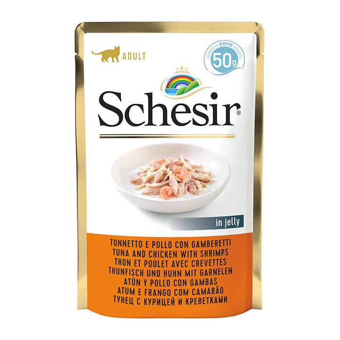 Description / Schesir Adult Pouch Με Τόνο, Κοτόπουλο & Γαρίδες 50G