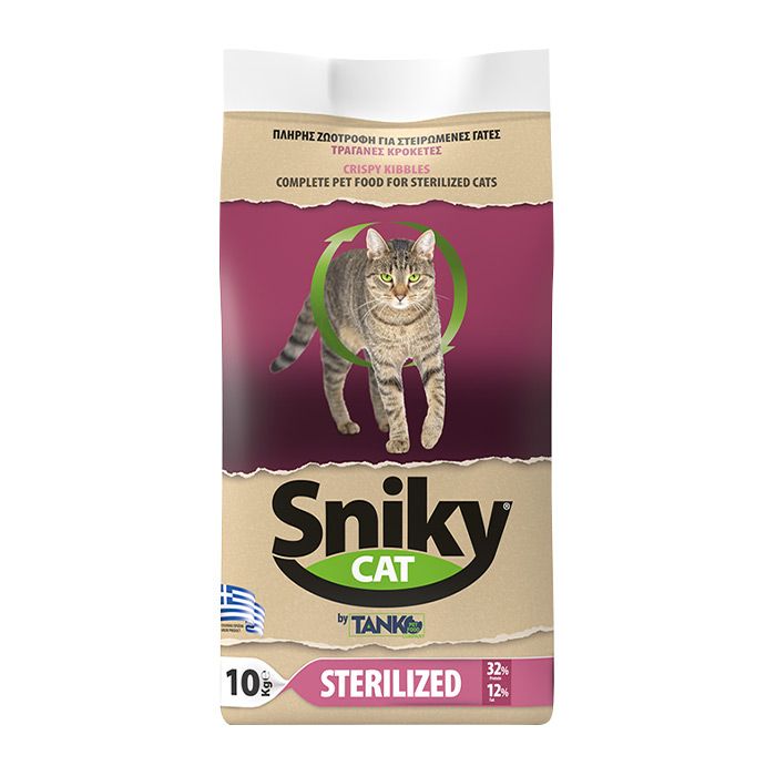 Η ξηρά τροφή Sniky αποτελεί ένα πλήρες και ολοκληρωμένο γεύμα με θρεπτικά συστατικά και βιταμίνες, ιδανικό να καλύψει τις ανάγκες κάθε στειρωμένης γάτας. Η τροφή περιλαμβάνει: Ανόργανες ύλες για διατήρηση υγιούς ουροποιητικού συστήματος Ίνες φυτικής προέλευσης που βοηθούνnbsp;στην πέψη Φώσφορο για την προστασία δοντιών και οστών Λιπαρά οξέα για όμορφο και λαμπερό τρίχωμα και υγιές δέρμα.