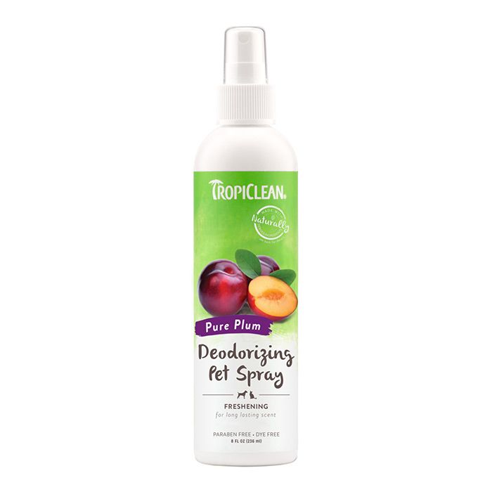 Το TropiClean Deodorizing Pet Spray συντηρεί και καταπραΰνει καθώς διασπά τις άσχημες μυρωδιές στην πηγή τους, δροσίζοντας αποτελεσματικά τον σκύλο, τη γάτα και το σπίτι σας. Το ευχάριστο άρωμα δαμάσκηνου, αφήνει το κατοικίδιό σας να μυρίζει φρεσκάδα